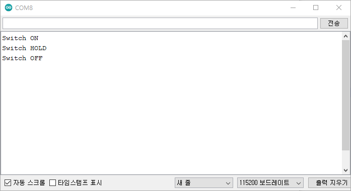 누르고 있으면 동작.(누르고 있는 동안 동작함)