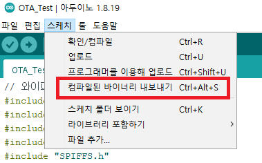 이제 부터는 ESP32모듈을 USB로 연결하지 않아도 펌웨어를 업데이트 할 수 있습니다.