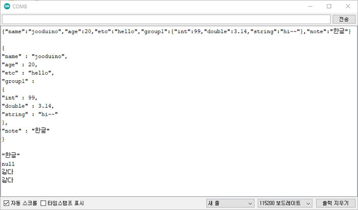 JSON 형식을 시리얼 창으로 확인할 때 좀더 보기 좋게 펼쳐서 보여 줍니다.
