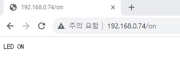 웹브라우저 주소창에 직접 'ip주소/on' 이라고 입력하면 버튼을 누른 효과와 같습니다.