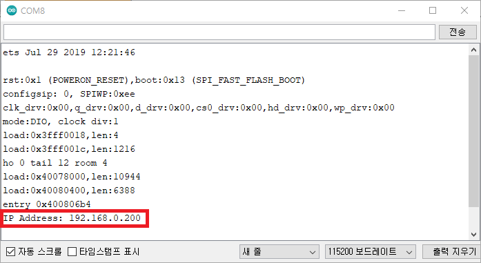 다음 부터는 일일이 시리얼창으로 ip주소를 확인하지 않아도 됩니다.